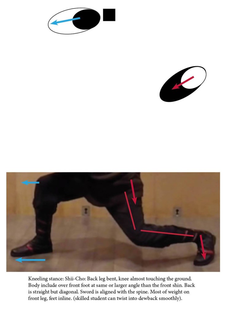 The three guards used in Shii-Cho allow one to defend or attack any of the zones. They are simply put; low, middle, and high guards. Each one has it’s purpose and application. There are again three aspects to each guard; stance, body, and blade positioning. Each guard is has multiple interpretations and should be seen and general categories rather than static poses. Ready stance (Attack/Defense): Footwork for Shii-Cho is characteristically simple. The stances for each guard are the same. Zone 5 foot forward, toe pointing straight, zone 6 foot behind turned out 45-90 degrees, the weight is in the middle but toward the back , hip is tucked, and the back is straight. By straight we mean not flexed or hunched. Leaning will be utilized to develop full body power later on.