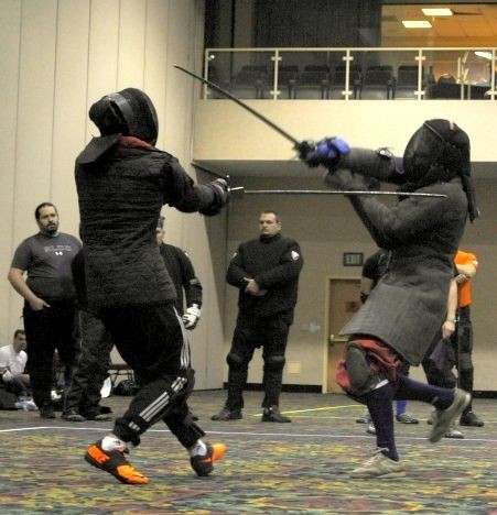 It is with the advance of protective equipment for training and the like, gear has become an essential part of the weapon fighter’s kit. This gear enables us to practice with full speed and actual contact with the opponent. This is the first layer of realism that gear provides. If we and our opponent are protected, we are not fearful of hurting them. We can use full speed blows and depending on the equipment used, full force strikes to most any target. The freedom in not only being able to hit our target “for real” but also knowing that our opponent can do the same thing is a huge part of sparring and keeping things “real”.