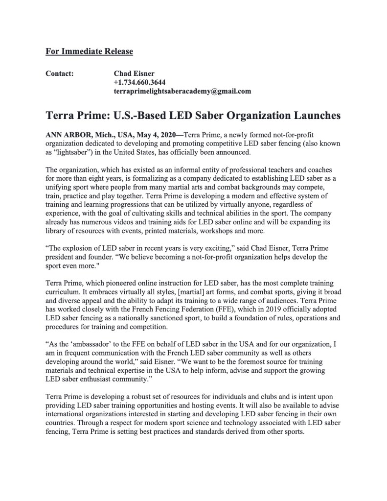 What us incoirpeerating as a non profit will allow us to do its expand our offerings of how we can interact with everyone. We will be offering more classes, online opportunities, and other new ways to connect and be a part of the fun. It will also enable us to give back to the community in more ways. We have always put out al our information for everyone to use and we hope the we can expand things and continue to be a resource for this echo want to know more or who want to connect with us and share resources and information. We will have more avenues for workshops, seminars, and learning. We are also citing to form relationships with professional sporting organizations and advocating for the adoption of LED saber sport into current events.
