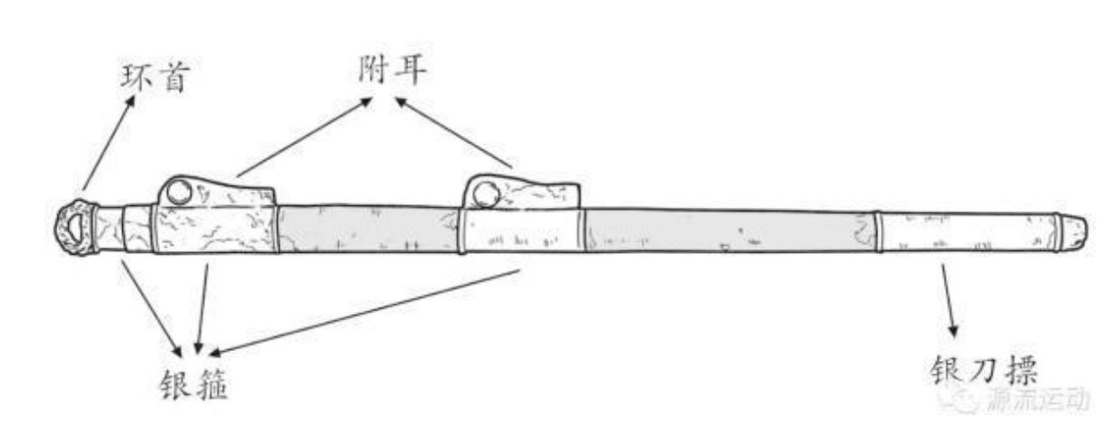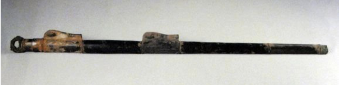 Unlike many weapons of the era, the scabbard of the hidden hilt dao is also tapered. This means that the fitting rings on the sheath must be different dimensions. The attachment method is taken from the Sassanian sabers. This is most likely due to the increased need and use of calvary. The old Han style of single buckle in a belt transitioned into the two loop hangers that became prominent from that time forward becoming the standard until today.