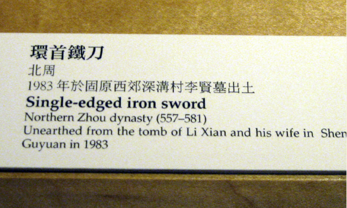 The tomb and its occupant are located at an epicenter of trade during the Northern Zhou dynasty. It is part of a larger complex of tombs that have been untouched by grave robbers resulting in a huge number of artifacts recovered. The contact with Western cultures is well represented from these sites. And this weapon represents a product of the contact. The Ewer and the Sword represent a larger picture of technological and cultural exchanges as a result of the trade on the Silk Road.