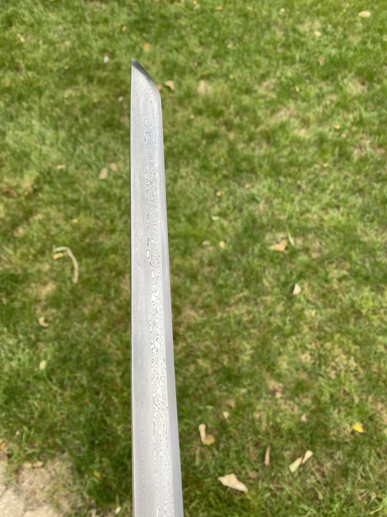An interesting thing that was identified by Ben Judkins as we were discussing the sword (albeit that he was commenting on the first version. He found that cutting things directly in front of you as is the custom for cutting, the sword did not perform very well. Cuts become a bit difficult to pull off and through the larger targets, the cut often stops halfway through. The remedy was to assume a horse stance with the hips facing 90 degrees from the target. Once this change was made, both of us immediately had improved performance.