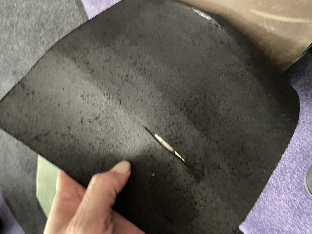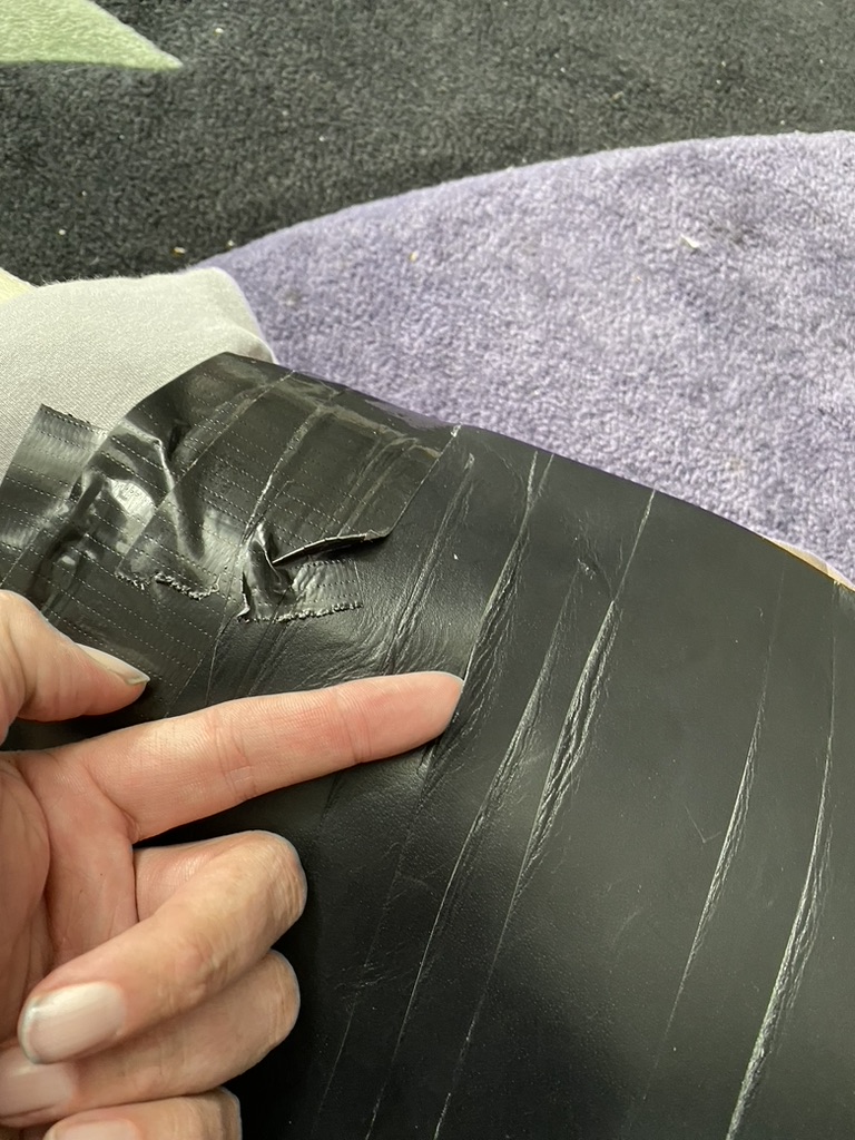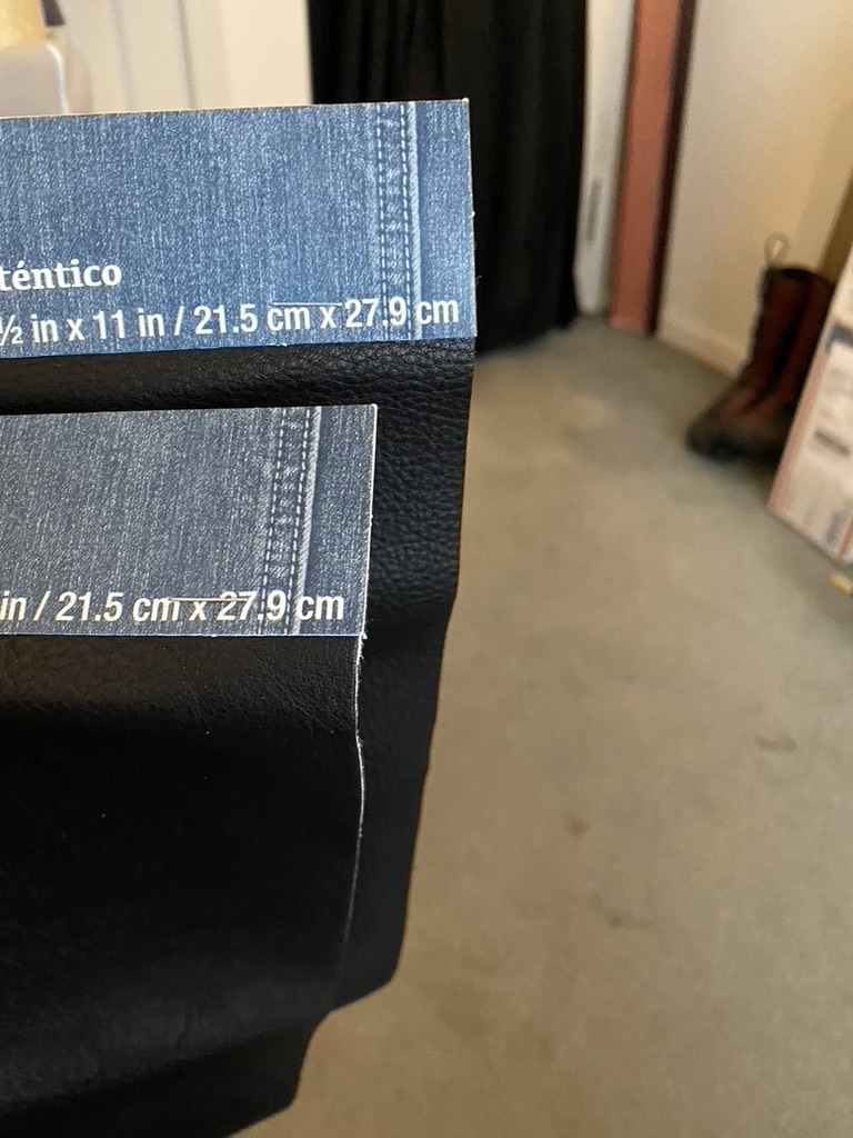The target was one of the foam rollers with layers of different material. This was not to simulate armor, but rather to make the target harder to cut as to see any difference in performance better. The layers were, two layers of thick stiff boot/belt leather, two layers of thiner garment leather, and a t-shirt folded to create 8 layers of cotton fabric. This was loosely affixed to the target and the target its self was free standing. In retro spec, it might have been a little too difficult to cut through, but it did offer some interesting if subjective findings.
