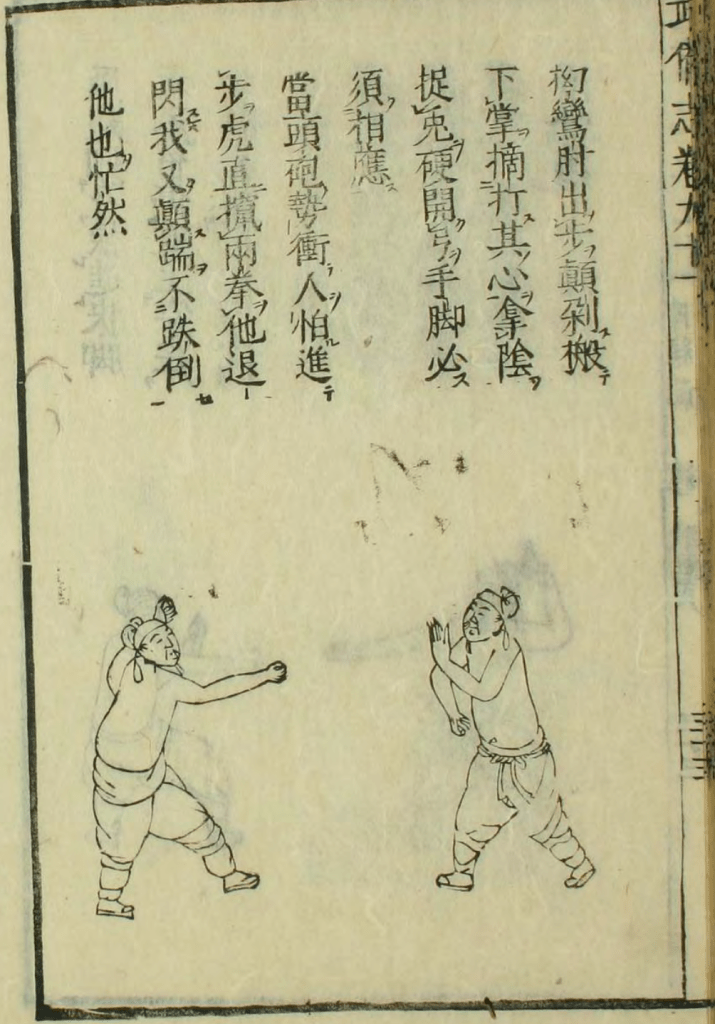 Qi Jiguangs’s Empty-handed method is perhaps one of the more well known documents from this time period in the martial arts. This is in large part due to the fact the many of the names of techniques used in this text are still found in martial arts today. Many traditions cite this document as an early predecessor to the modern arts they practice. Especially Taijiquan, these arts often refer back to this document without much in the way of analysis. As these names are often popular, they have over the years acquired some conventional glosses. I have made a directed effort not to simply use these familiar translations but rather the render the name in as clear language as I can to describe the action taking place or to give a clearer context with the language. No doubt this might cause some initial confusion amongst readers who are looking at this through the lens of their own art. But, I am approaching the text as a separate practice, however influential it might have been.