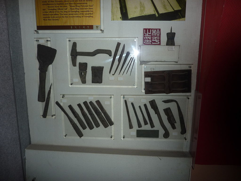 Not having access to archeological examples, we had to figure out how to achieve this simple, yet difficult task indirectly. We began getting tips on woodworking and I started to research Chinese work working methods from the Han. Taking into account the tools they had, it was surprisingly easy to come up with a plausible method of attack using conventional wood working techniques. Han craftsman had certain tools that would be replaced in later years. They did not have draw knives, planes, or spoke shaves back then, although they are very useful for just this type of job. But a combination of chisels, axes, knives, and files could get the job done just as simply.