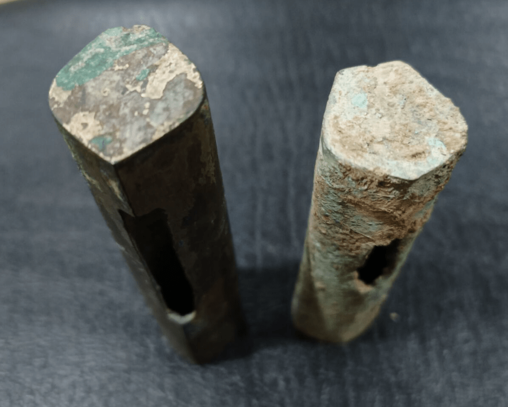 What exactly is a Han Dynasty Ji (full name T shaped Ji漢卜字鋼戟)? The Ji is a form of Chinese Halberd. It consists of two brass ends on a tapered staff with a ti shaped blade mounted in the end. Until just 50 odd years ago, this weapon was assumed to be the famous “Ji Dao” form the Song Era Wujing Zong Yao. That shape, with the present moon blade, has now become synonymous with the Ji. But the Han Dynasty Ji is a different beast. But it has been a missing link in the history of Chinese warfare and weaponry until recently. This made research on the construction of the weapon more difficult.